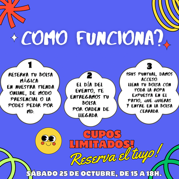 •El día del evento vamos a tener percheros y mesones armados en nuestro patio, llenos de ropa de todos los estilos y talles, para que llenes tu bolsa.